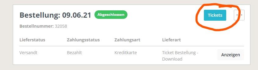 Zusätzlich findet Ihr Eure Tickets auch im Kundenkonto bei der Bestellung und Ihr könnt sie bequem jederzeit runterladen.