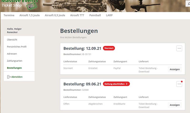 Solltet Ihr nicht auf die Erinnerung reagieren, schicken wir Euch noch drei weitere Erinnerung, in den folgenden Tagen, und danach wird die Bestellung von uns automatisiert storniert. Eure Tickets sind damit dann leider auch nicht mehr gültig für den Eintritt.
